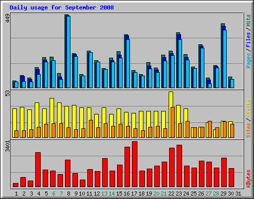 | Day | Hits | Files | Pages | Visits | Sites | KBytes | ||||||